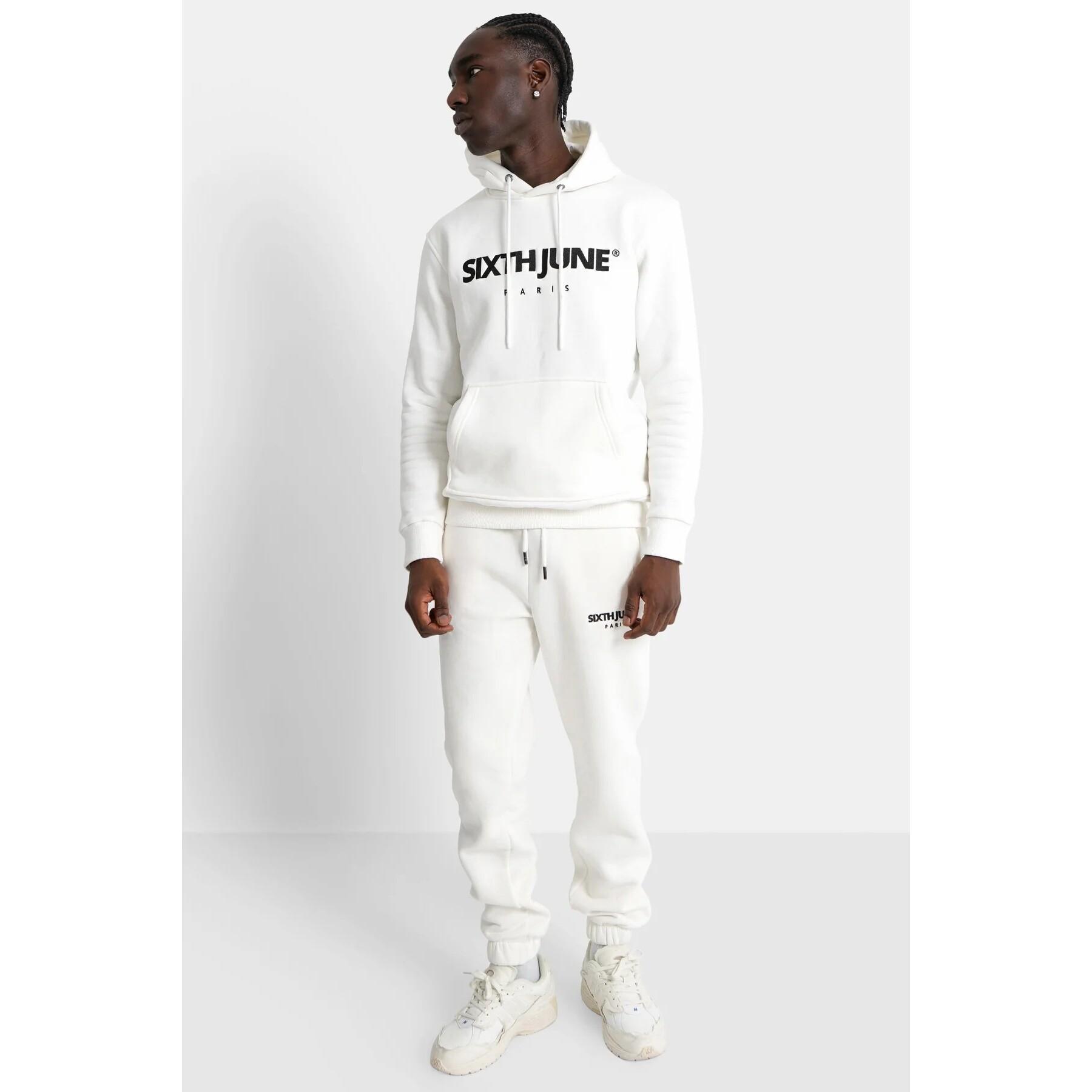 Tjockt, fleecigt tyg, Sixth June Paris broderat stort på bröstet, huva med dragsko.