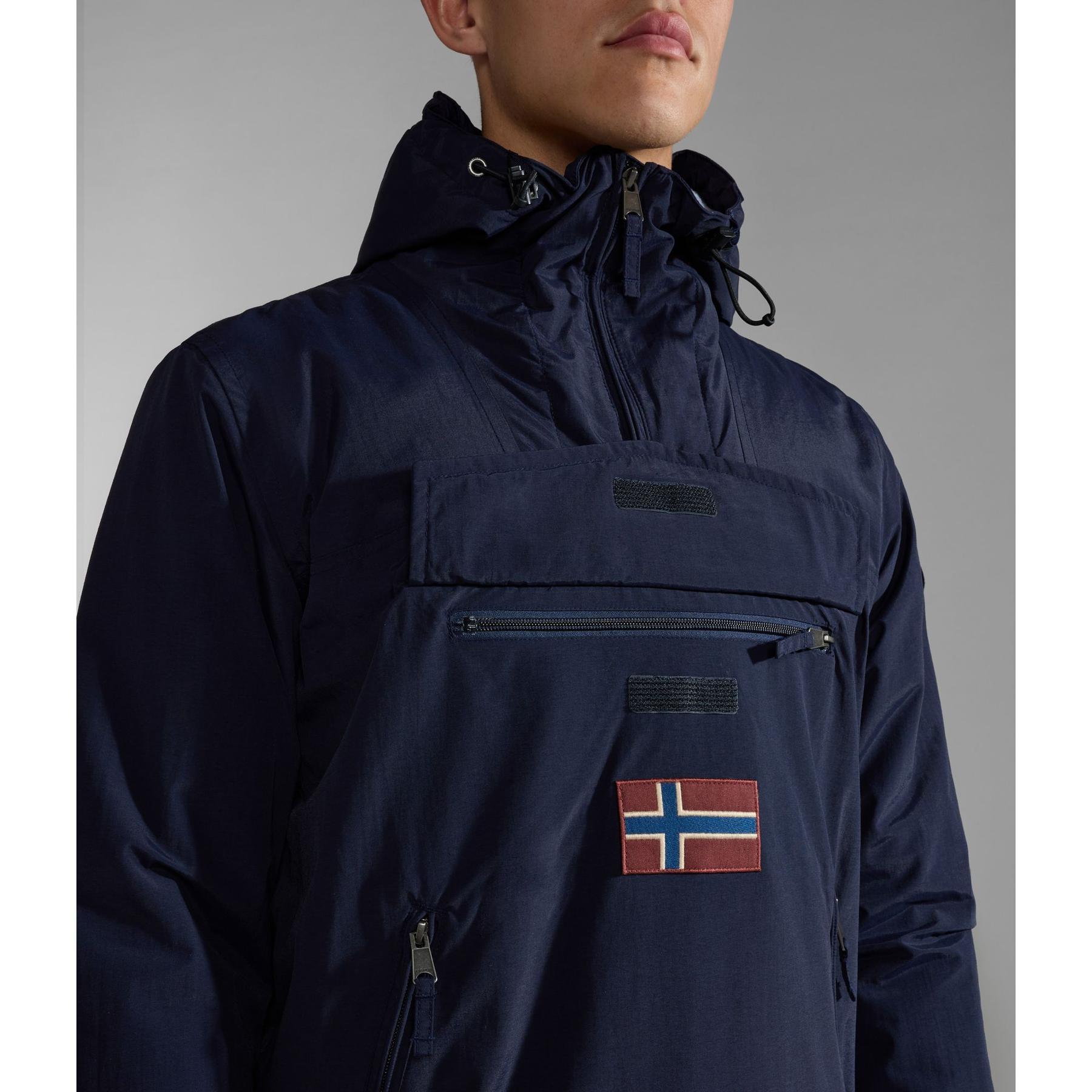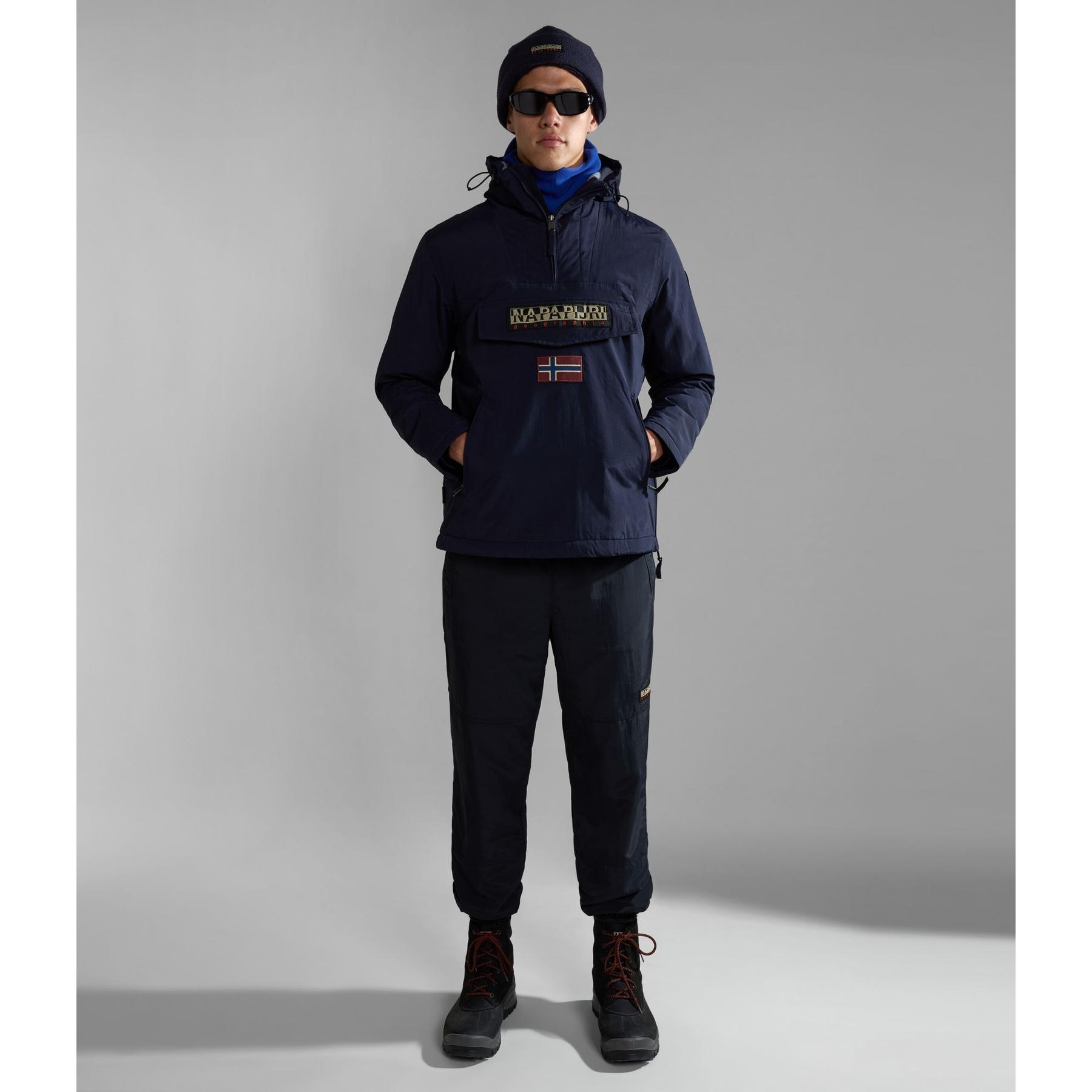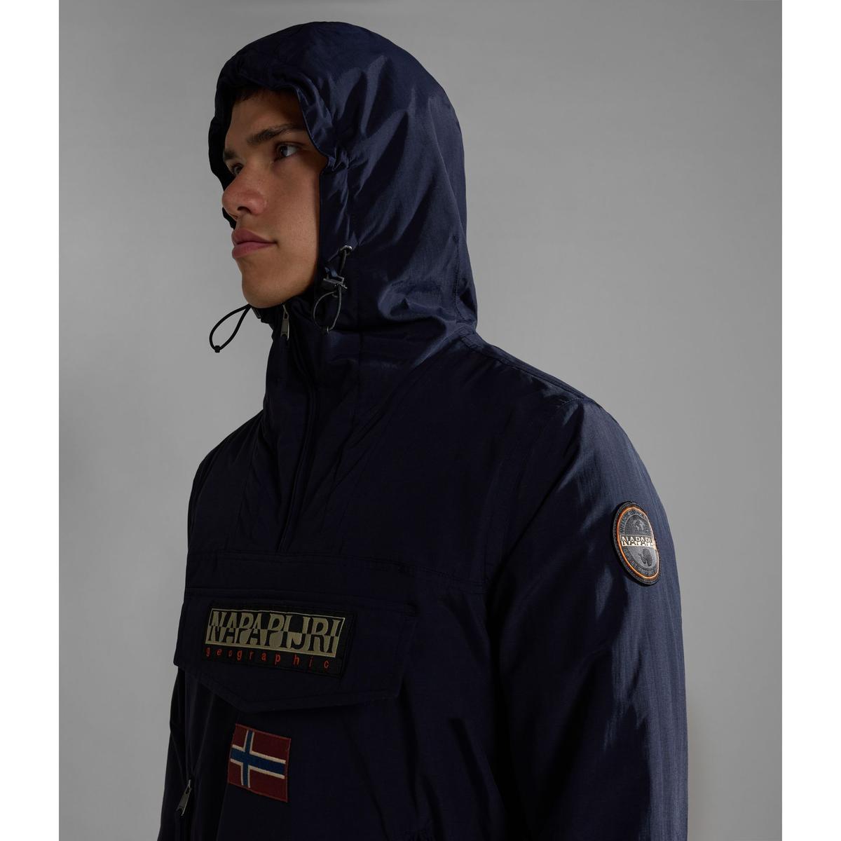Rainforest-anoraken, som ständigt utvecklas men alltid är ikonisk, hyllar vårt varumärkes kärlek till Norvège, ett mångfacetterat land som speglar det exceptionella sätt på vilket Napapijri skapar unika, innovativa och praktiska ytterplagg. Den erbjuder optimal prestanda utomhus tack vare högkvalitativa tekniska funktioner som en huva med avancerad justering, tejpade sömmar, dragkedja i sidan och inre manschetter. Den är designad i en futuristisk esprit och fortsätter vårt engagemang för miljön tack vare sin återvunna fjäderfria stoppning.